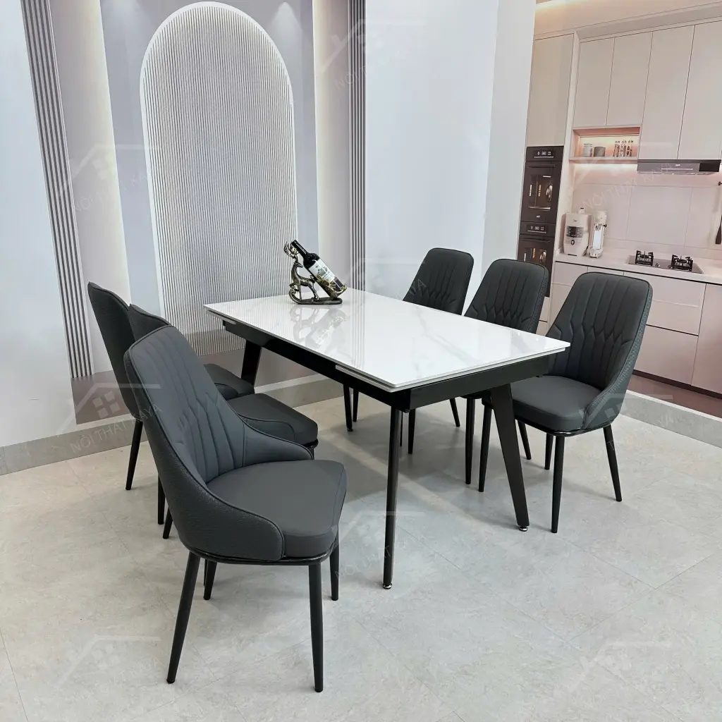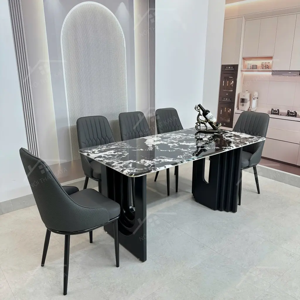 • Mặt bàn: Đá Ceramic công nghệ mới Phủ thêm lớp bóng cao cấp Chống xước, chống thấm ố Chịu lực, chịu nhiệt siêu tốt.