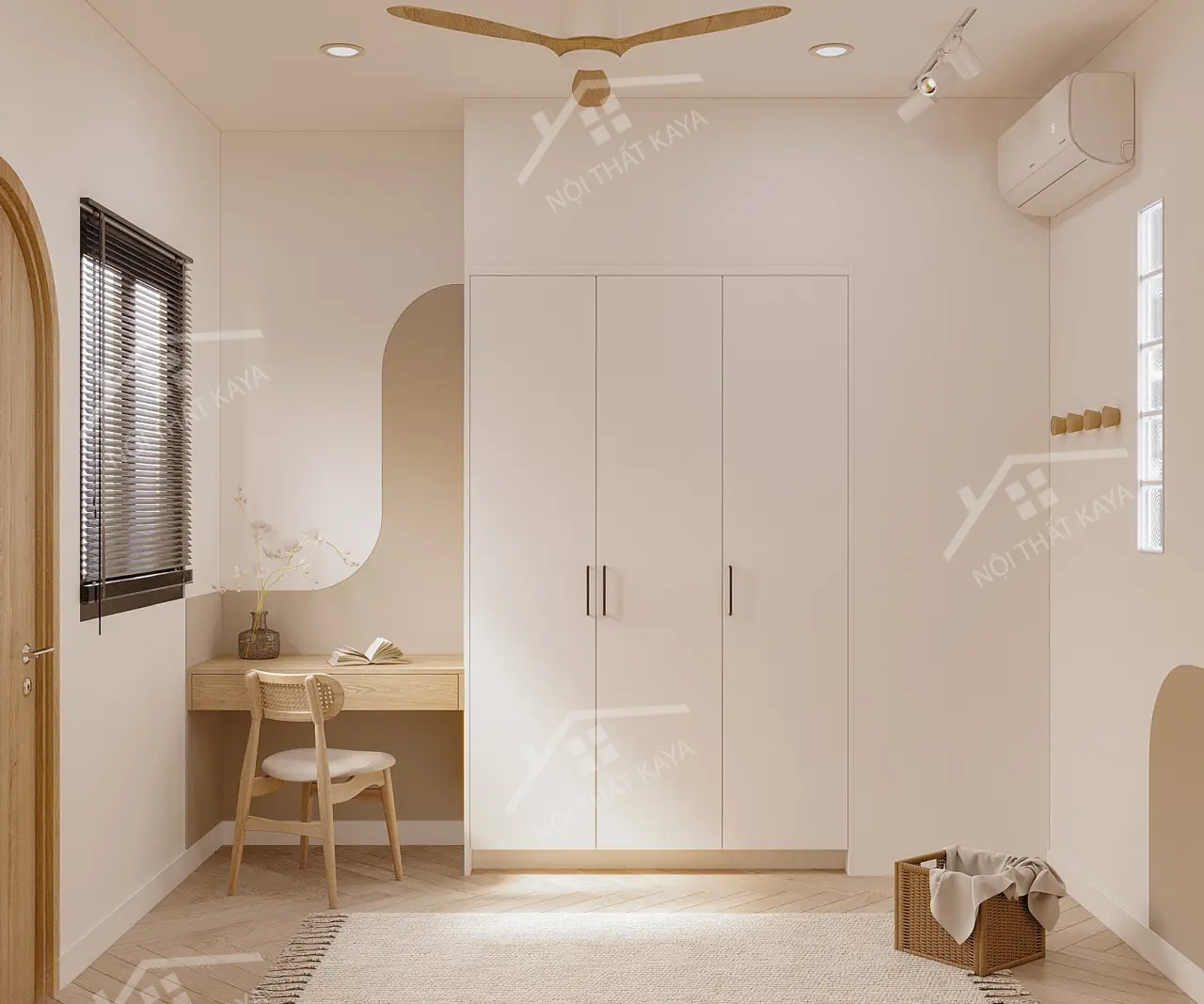 - Bàn học, tủ và giường được thiết kế an toàn, bo cạnh, phù hợp với trẻ nhỏ.