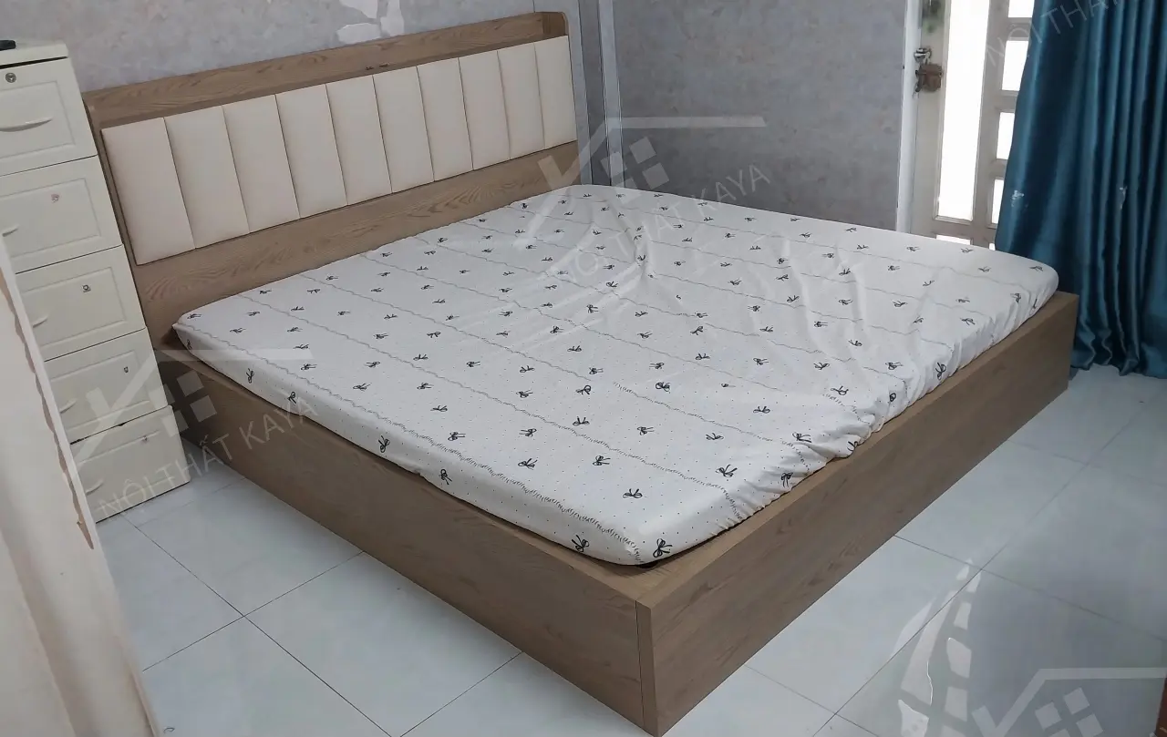 Giường gỗ công nghiệp đầu giường bọc nệm GGCN005