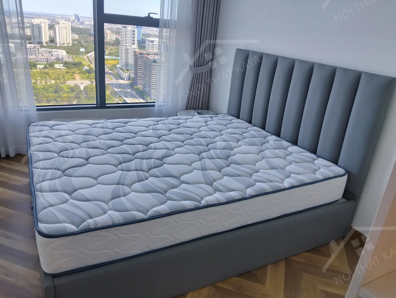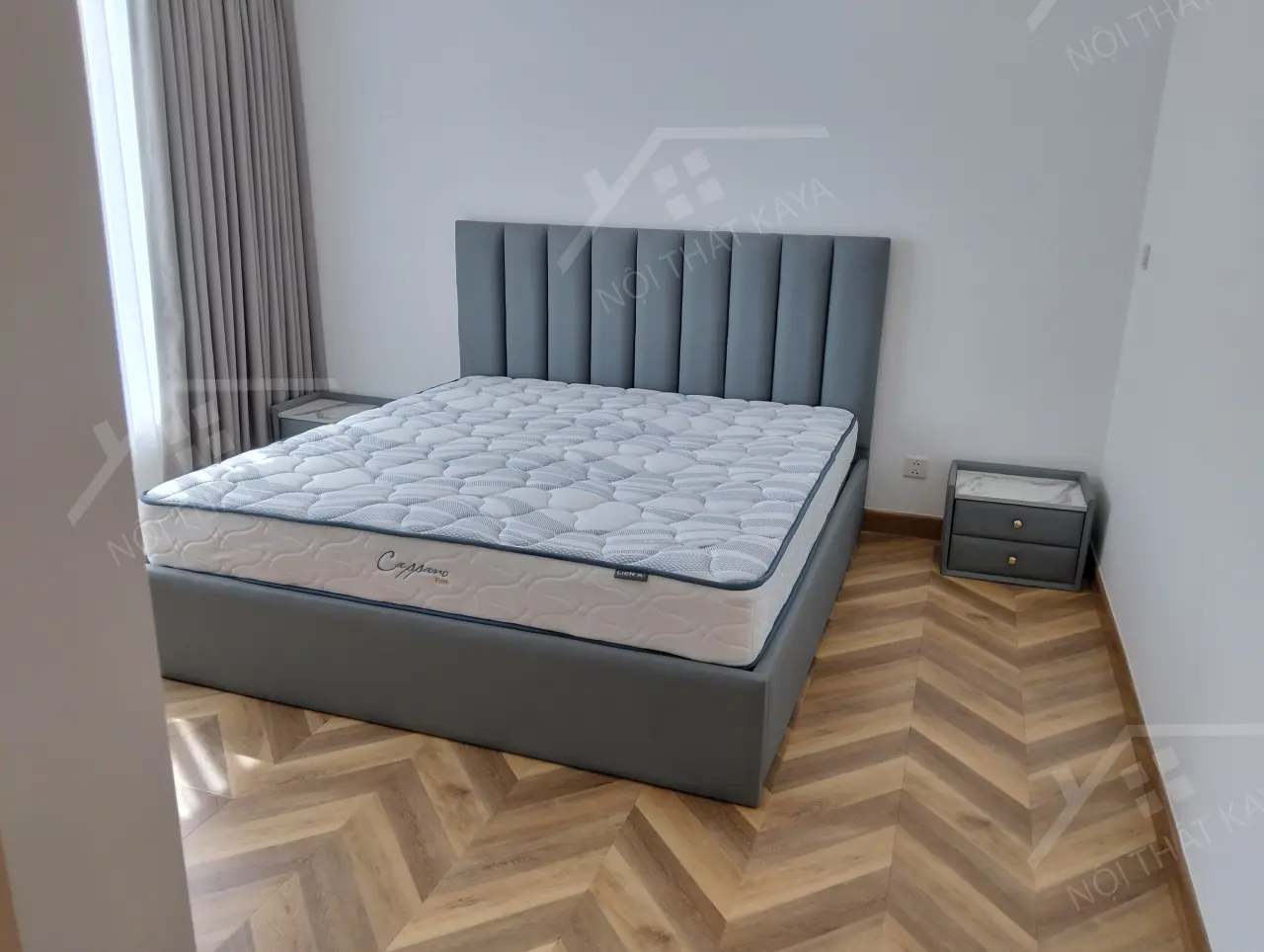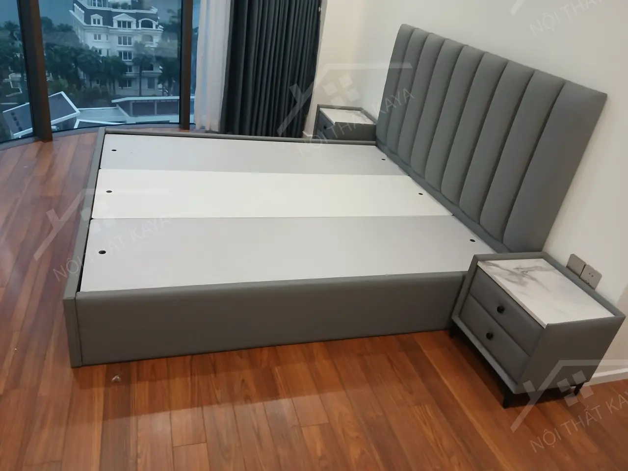 Với mẫu giường bọc nệm xếp li này Nội Thất KAYA sản xuất theo tiêu chuẩn xuất khẩu với khung gỗ tự nhiên hoặc thép hợp kim không gỉ sơn tĩnh điện kết hợp với gỗ MDF, HDF đã trải qua quá trình xử lí chống ẩm mốc. mối mọt cong vênh.