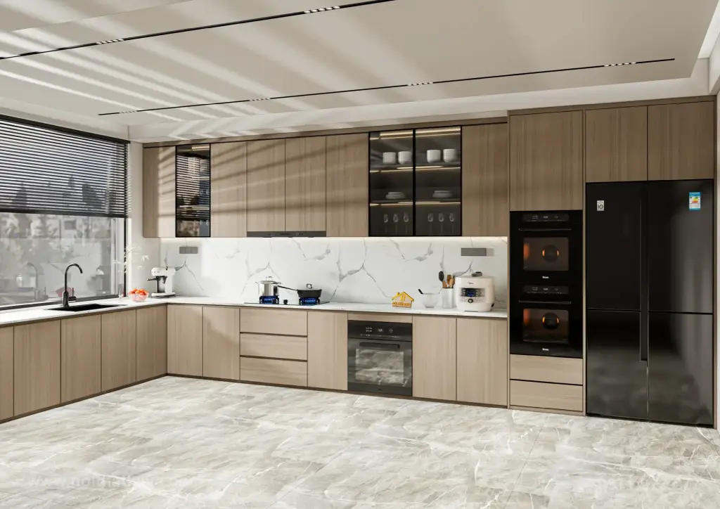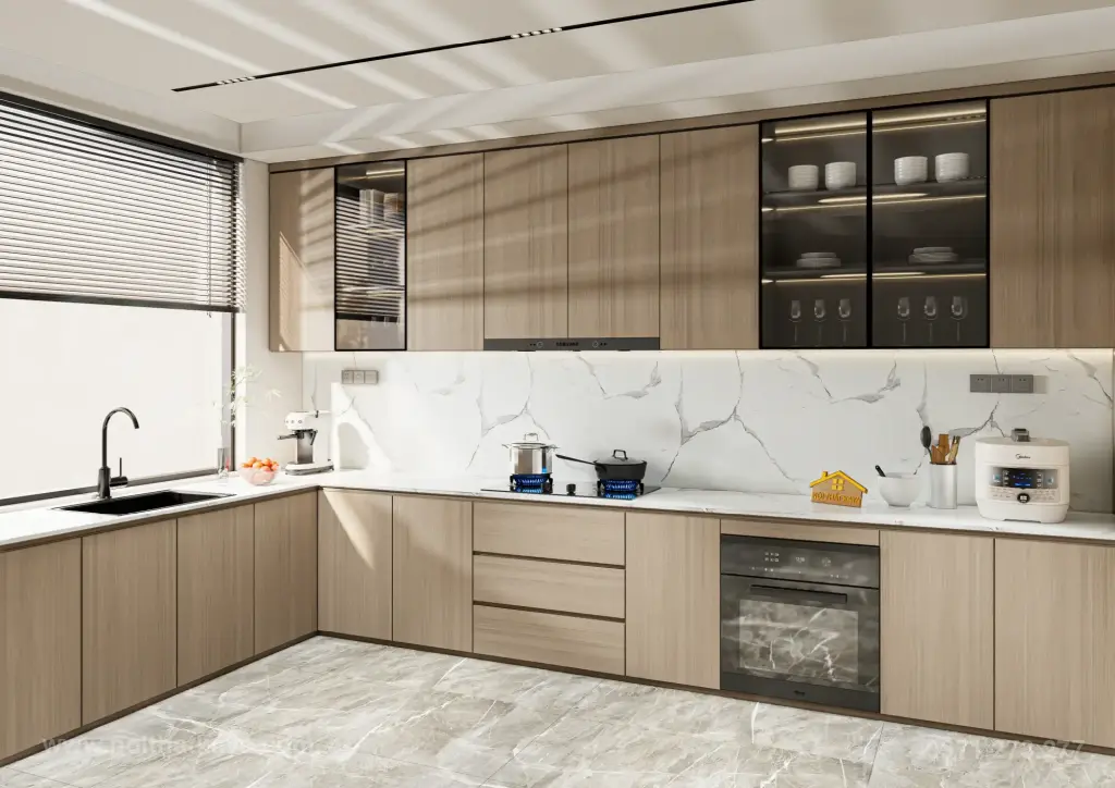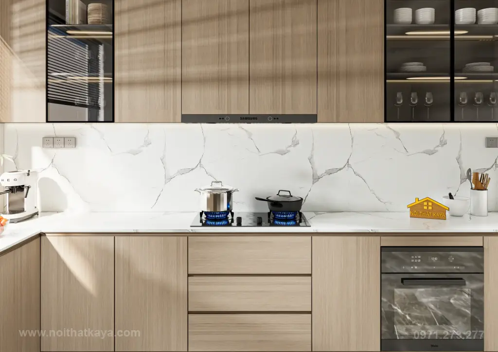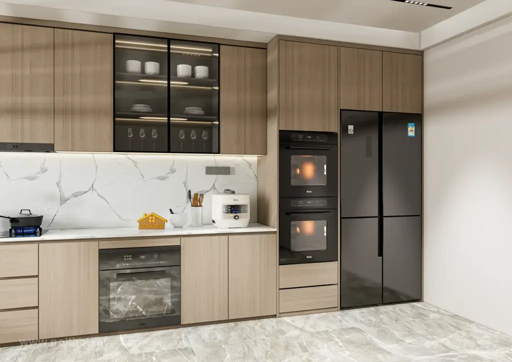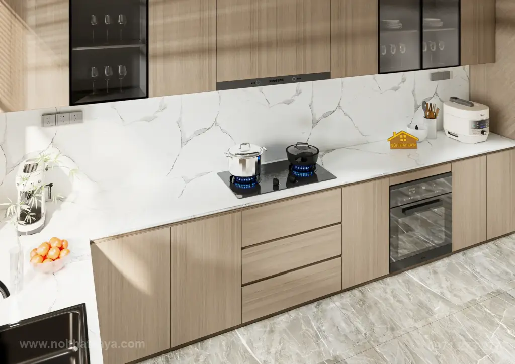 • Chất liệu: Gỗ công nghiệp Ba Thanh, Thanh Thùy, Kes lõi xanh chống ẩm, phủ nhựa Melamine 2 mặt bóng láng không thấm nước, cấu trúc bền vững chống ẩm mốc, chống mối mọt côn trùng.