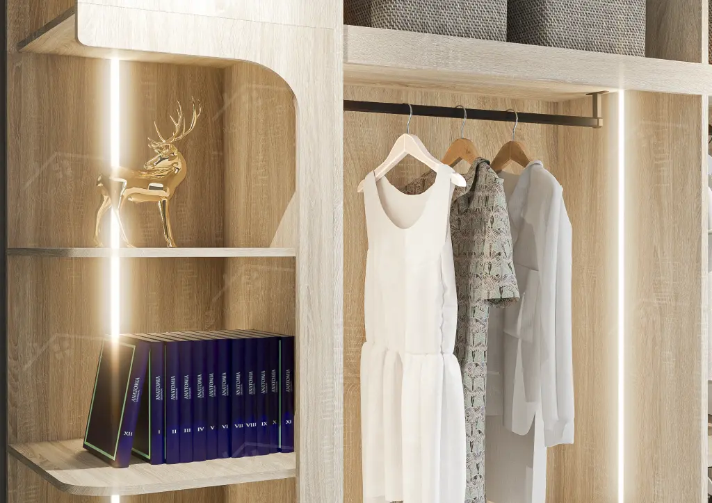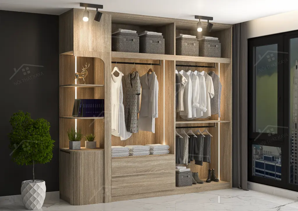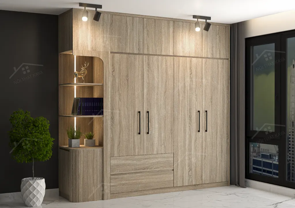 • Chất liệu: Gỗ công nghiệp Ba Thanh hoặc An Cường lõi xanh chống ẩm, bề mặt vật liệu phủ nhựa Melamine bóng láng không thấm nước, cấu trúc bền vững không ẩm mốc, chống mối mọt côn trùng.