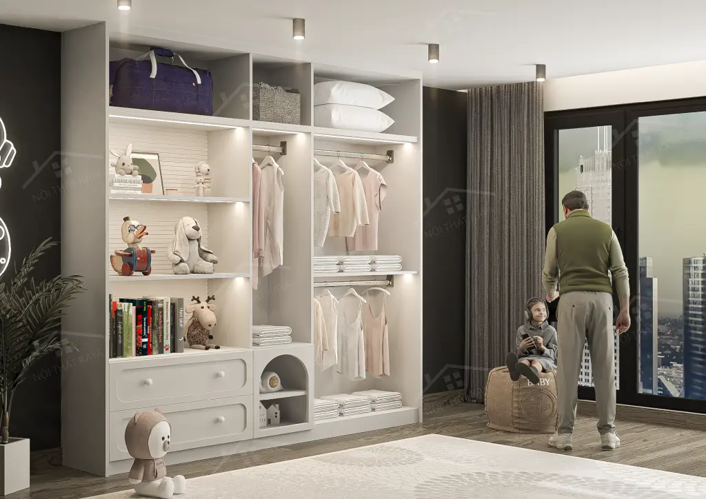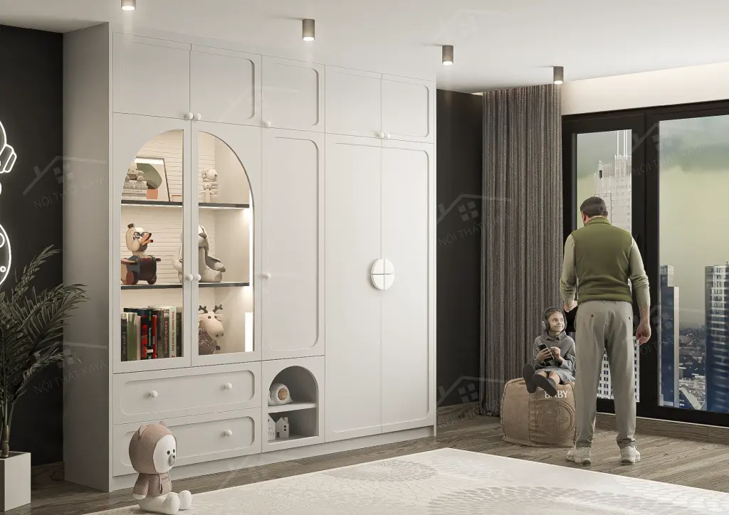 • Chất liệu: Gỗ công nghiệp Ba Thanh hoặc An Cường lõi xanh chống ẩm, bề mặt vật liệu phủ nhựa Melamine bóng láng không thấm nước, cấu trúc bền vững không ẩm mốc, chống mối mọt côn trùng.